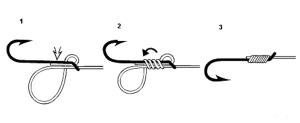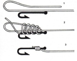 Füles horgainkat nem csak Clinch csomóval rögzíthetjük. Másik - és némileg jobb - megoldás, ha hasonlóképpen rögzítjük a zsinórra, mint a lapkás horgokat. Kicsit bonyolultabb csomó, de megtanulni ezt sem ördöngösség.